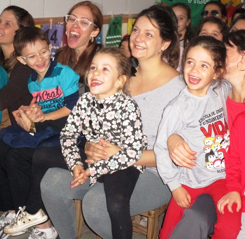 Entregamos os presentes, elas adoraram, saímos para brincar na rua, depois da brincadeira comemos negrinho olhando filme com toda família reunida. Depois minha mãe, minha avó, meu avô e meu pai foram conversar, enquanto eu, minha tia e meu irmão, fomos fazer uma apresentação para as mães. Os da família sabiam, mas elas não! Elas adoraram a nossa apresentação!