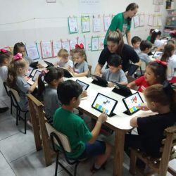 Sentir e dominar a máquina que nos conecta ao mundo tecnológico, saber usá-la como ferramenta de estudo, lazer e comunicação são objetivos da Informática Educativa sob a responsabilidade da Analista e Desenvolvedora de Sistemas, Professora Melina Bilhalva Camargo.