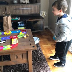 Toda semana, os alunos levam para casa kits com o material que irão utilizar nas aulas online. Esse kits, além das atividades e materiais, vão recheados de carinho, por vezes, em forma de bolinhos ou biscoitos, das Profes da turma (fotos 1 e 2 da galeria abaixo).