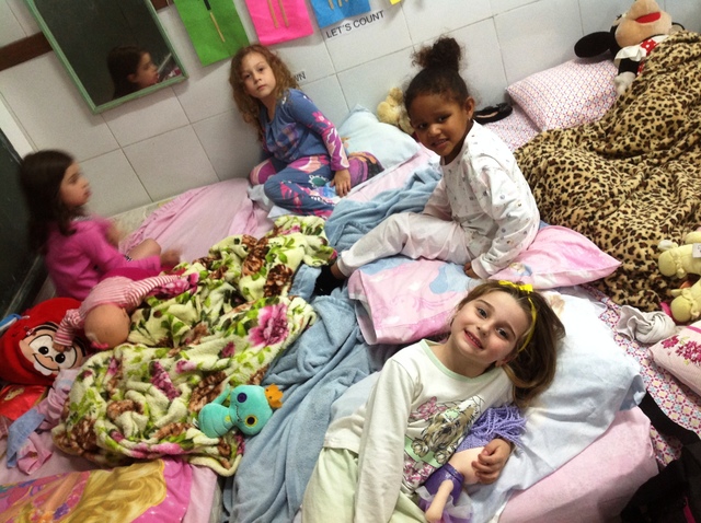 Depois desta comida saborosa, todos “personagens” presentes, fizeram a higiene e colocaram seus pijamas. Aproveitaram para fazer rodas de leitura de quadrinhos, assistir histórias do Mauricio de Sousa e adormeceram.